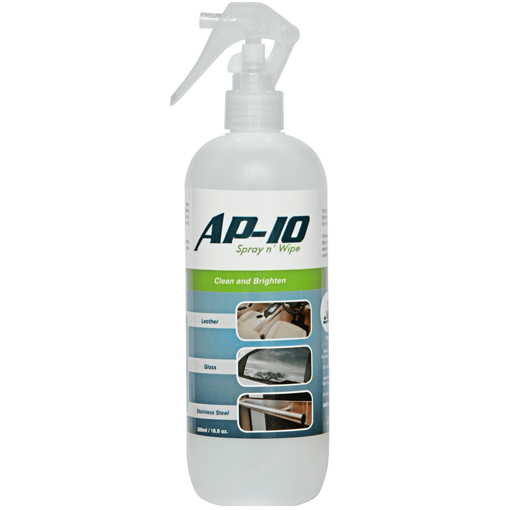 AP-10 là nước làm sạch bề mặt đa năng cho đồ dùng nội thất (du thuyền, máy bay, xe hơi, khách sạn, văn phòng…). AP-10 có công thức ưu việt, không ăn mòn và tối đa hóa hiệu quả làm sạch bẩn đạm, bụi dơ và màu thực phẩm để trả lại màu sắc tươi mới cũng như làm tăng độ sáng cho bề mặt. AP-10 là sản phẩm làm sạch lý tưởng cho các bề mặt da, kiếng, thép không rỉ (inox), chrome, các loại gạch bóng (đá hoa cương, đá kiếng…). AP-10 có khả năng thẩm thấu nhanh và nhủ hóa mạnh để làm mềm bụi dơ mà từ đó dễ dàng làm sạch bề mặt chỉ với “01 bước lau”. AP-10 dễ sử dụng, an toàn và không cháy.